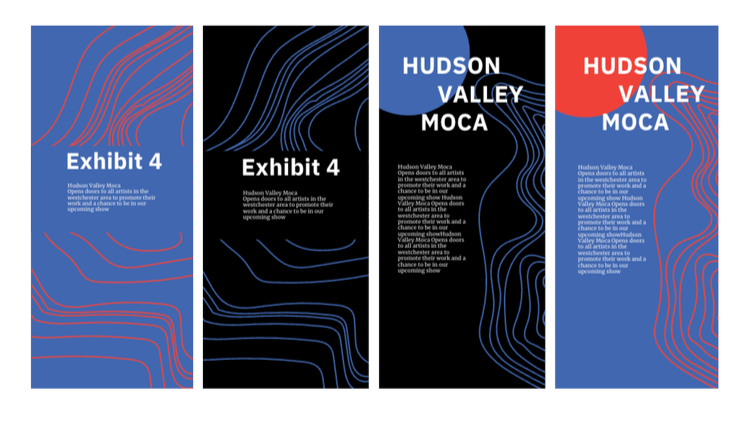 I designed this rebrand by modernizing the Hudson Valley MOCA logo and simplifying its form by introducing dynamic typography that evokes movement and energy. The new icon, rooted in the city’s topography, has a single blue dot to represent both location and artistic fluidity. This connects it to the cities identity as the artist district.